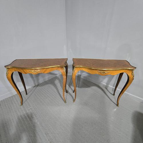 Pair French Marquetry Bedside Lamp Chest of Drawers