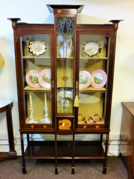 Art Nouveau Inlaid Mahogany Display Cabinet c.1900