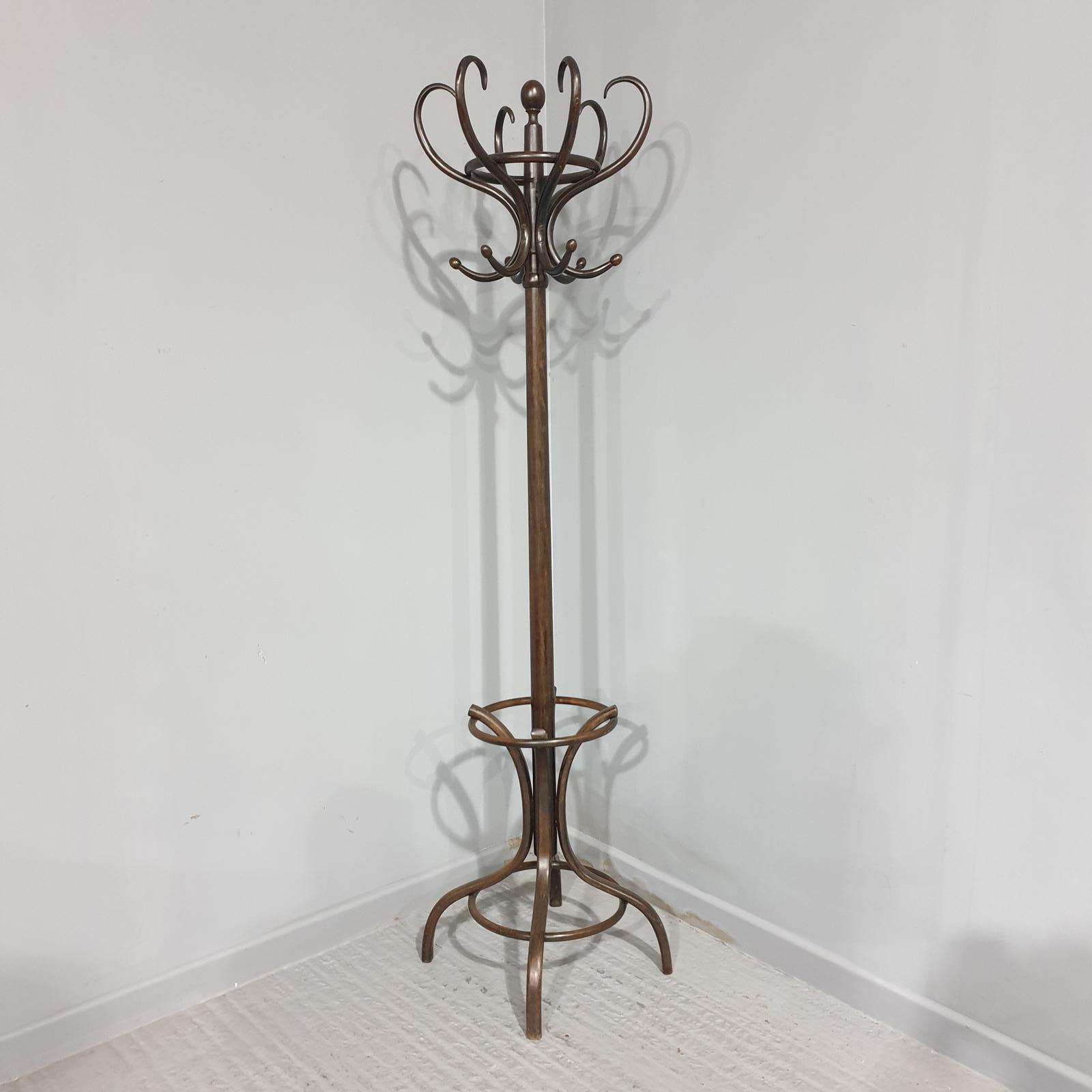 Offered for sale is this very good antique swivel top beech bentwood coat and stick stand in excellent original condition.