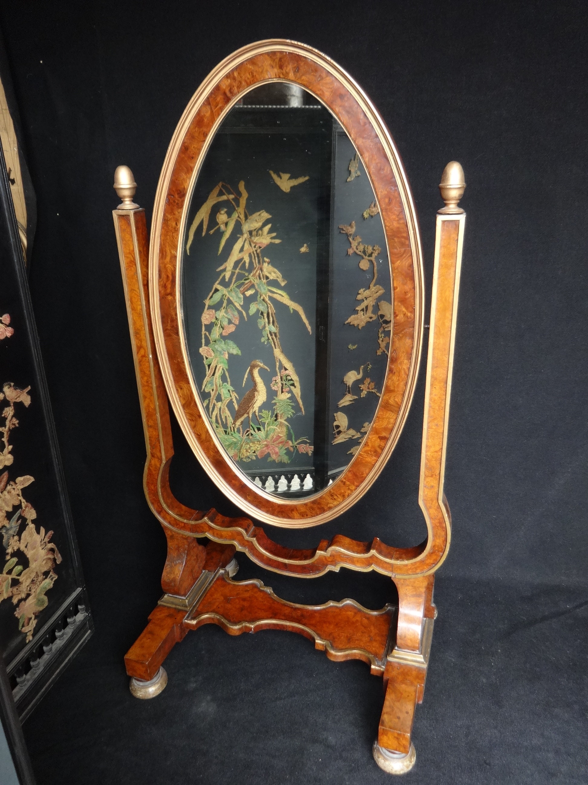 Burr Walnut and Gilt Cheval Mirror c.1880
