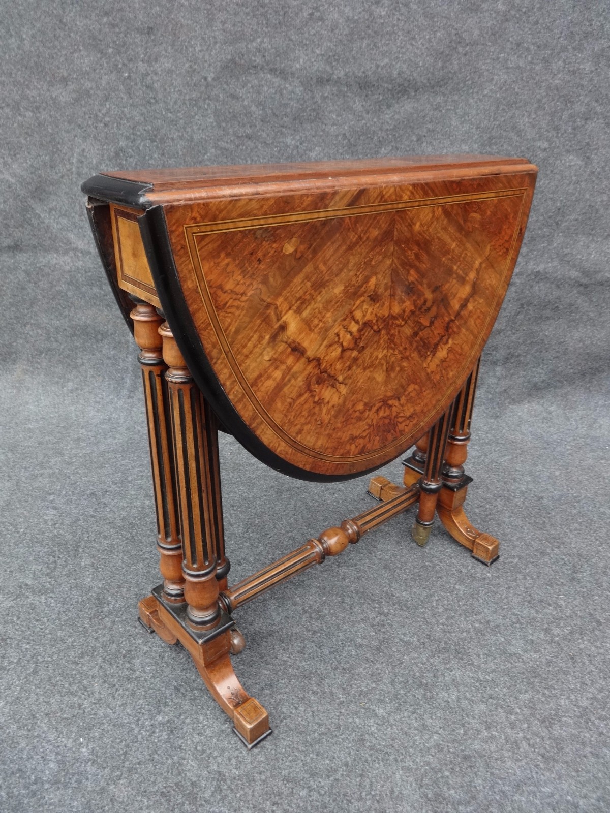 This is a very desirable burr walnut baby sutherland with ebony edge, walnut legs, inlaid with tulipwood, in very good condition.