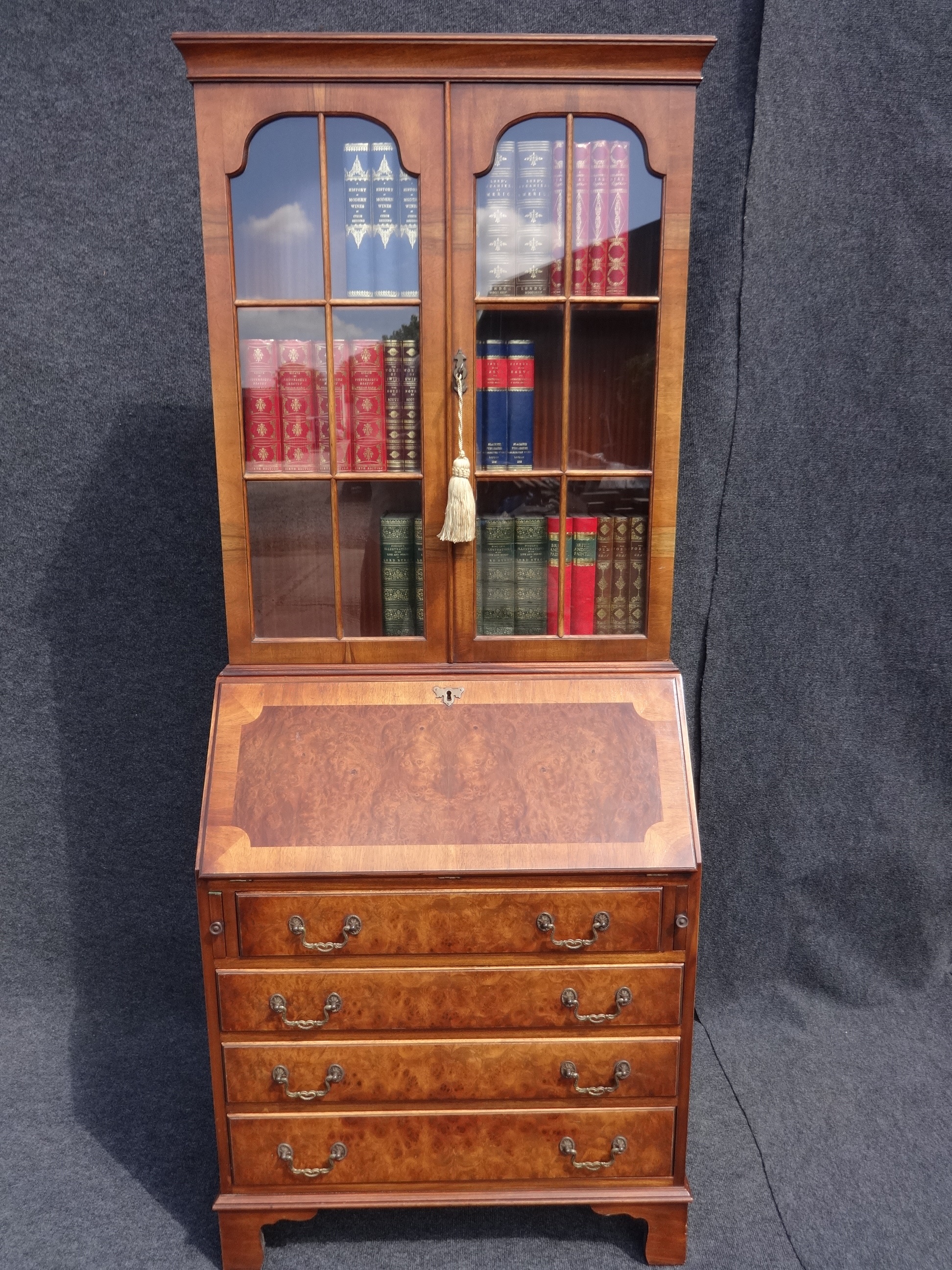 This burr walnut bureau bookcase is in excellent condition.