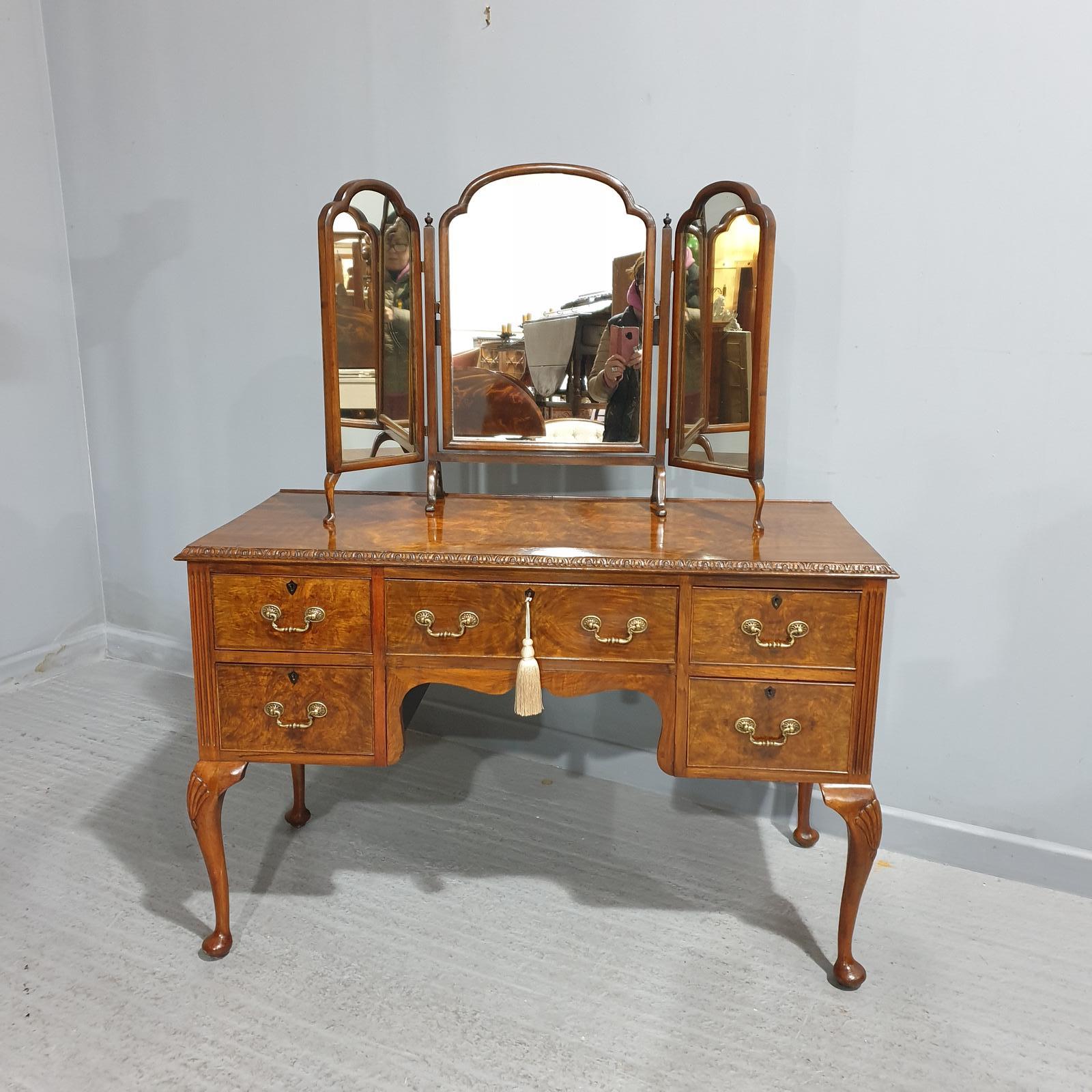 This is a good quality five drawer Queen Anne style dressing table with seperate tryptic walnut mirror in overall very good condition.