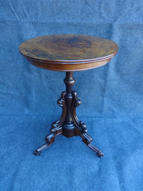 This is a good 19th Century antique Victorian burr walnut top with very pretty pedestal table, in original condition with original leather castors.
