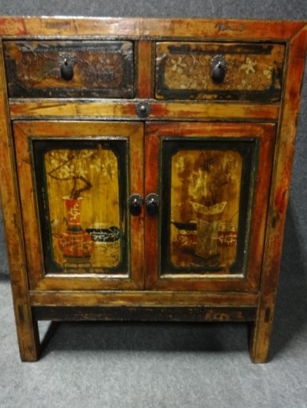 This is a very good painted Chinese side cabinet with two drawers and cupboard under with shelf, in good original condition.