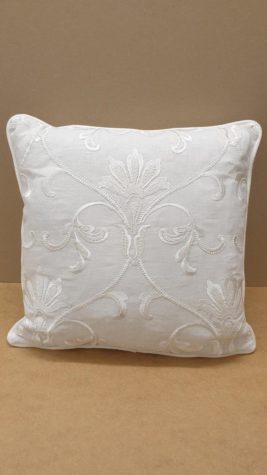 Stunning English handmade Colefax and Fowler Laaretta - Ivory embroidered, linen backed in Laura Ashley, zipped feather filled scatter cushion.