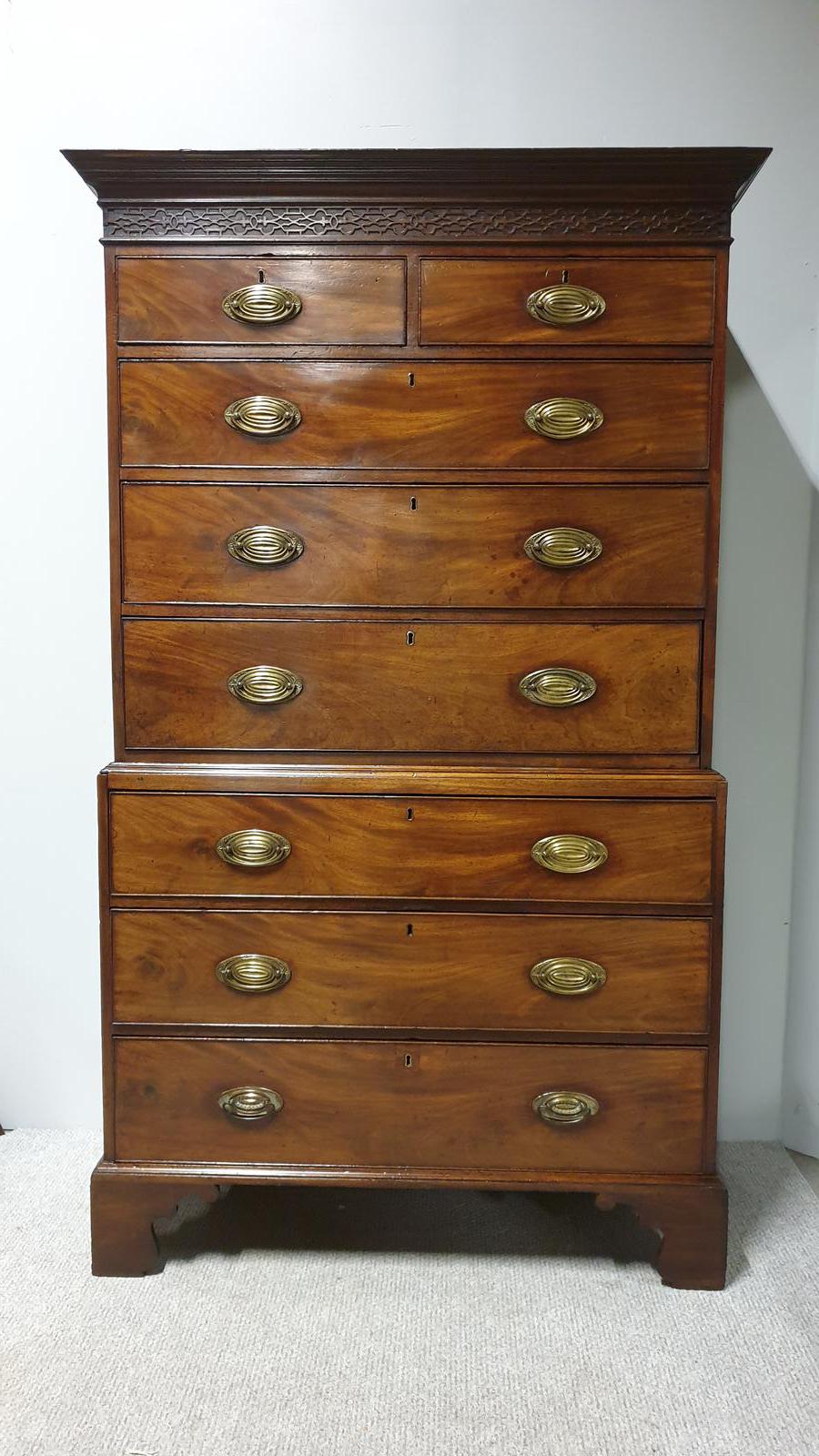 A nice country house Georgian mahogany chest on chest of drawers, in very good original condition, excellent colour splits into two, pine lined.