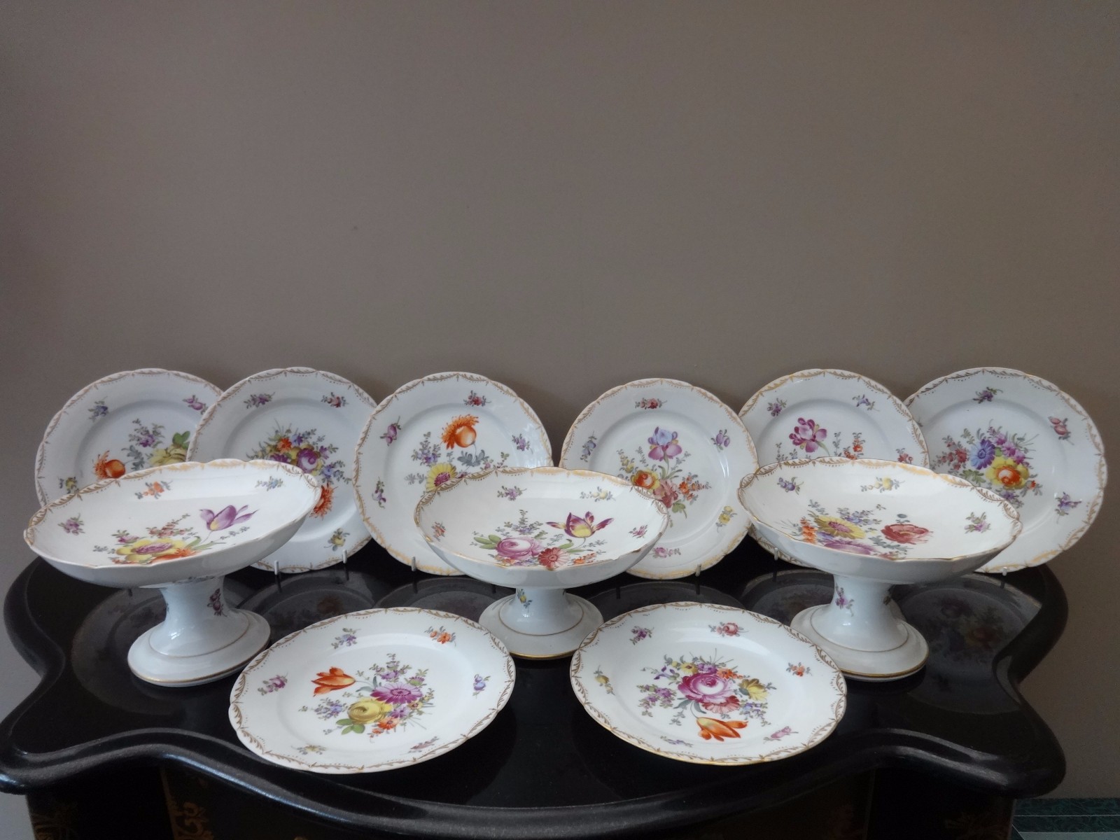 This is a fantastic 11 piece antique Dresden hand painted and gilded dessert service which is in excellent condition.