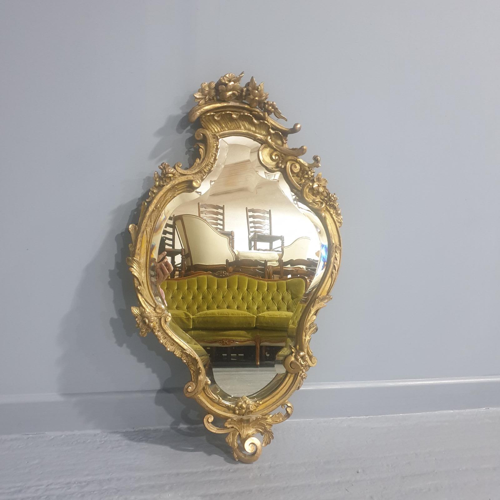 Early Victorian Roccoco antique gilt wall mirror, with deep bevelled original glass, in overall very good original condition.