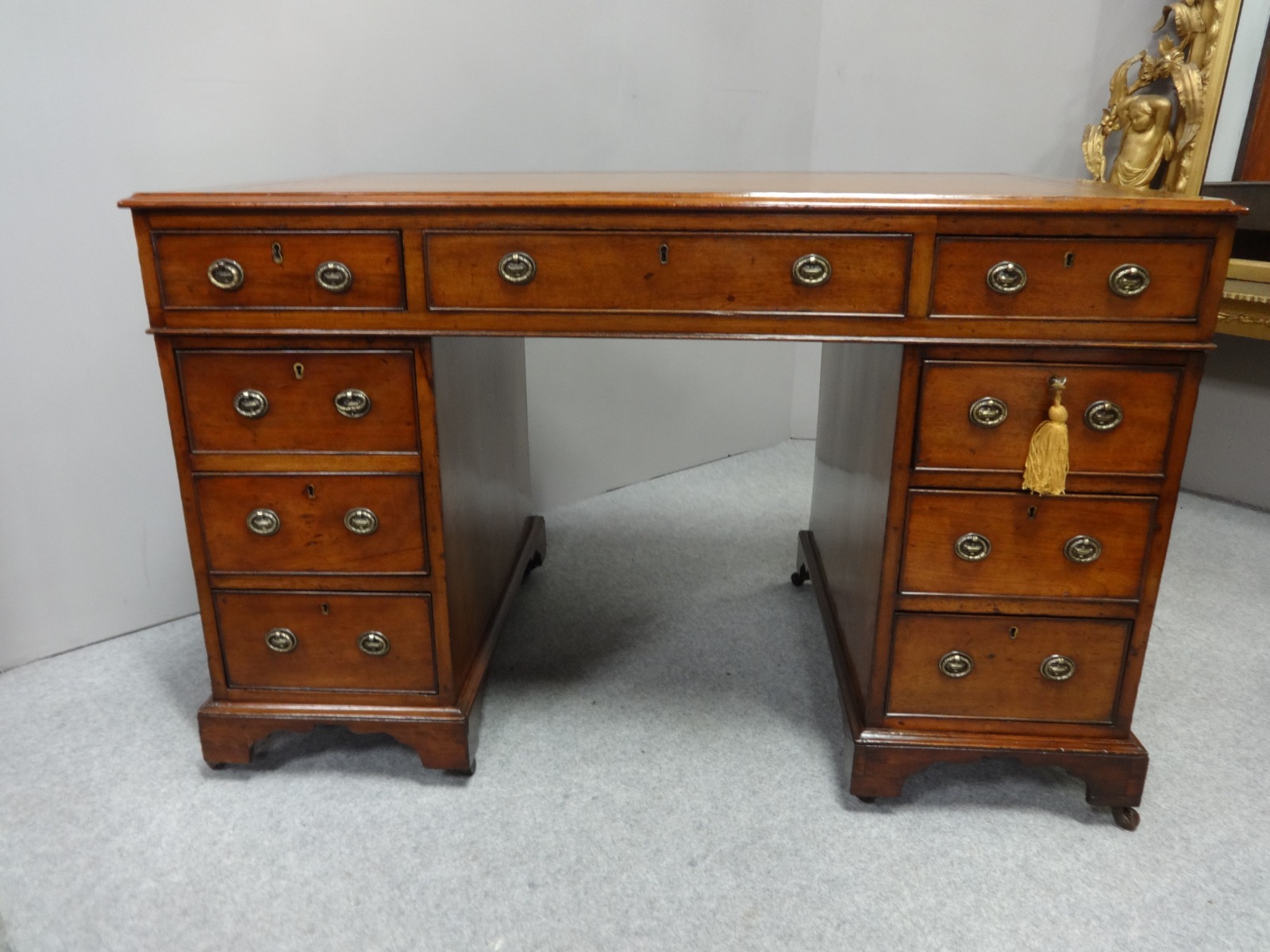 A very nice early Victorian double pedestal mahogany desk, with original locks, key and handles, in very good overall condition, splits into three.