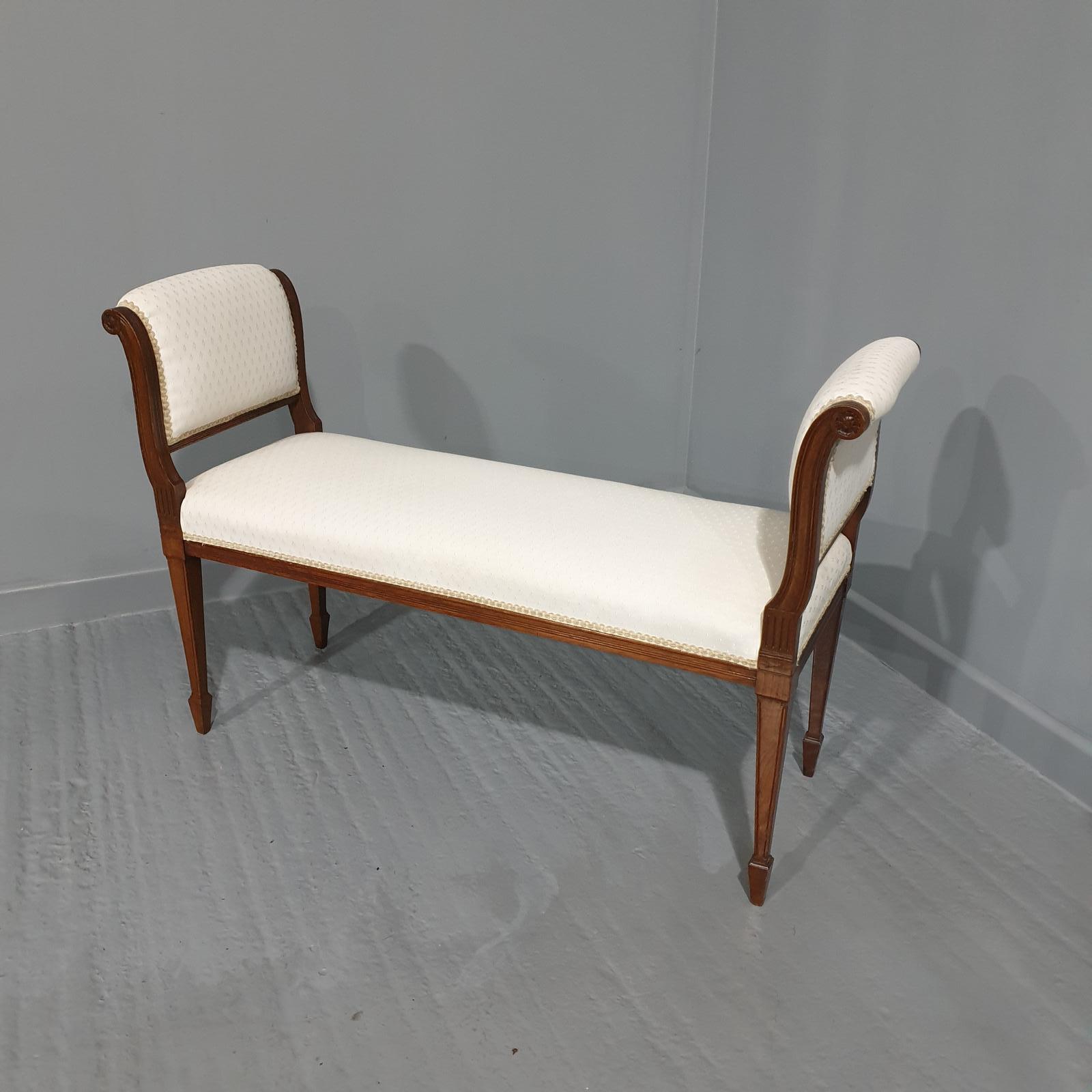 A very good quality Adam style mahogany window stool or duet stool, upholstered in cream fabric, in excellent condition.
