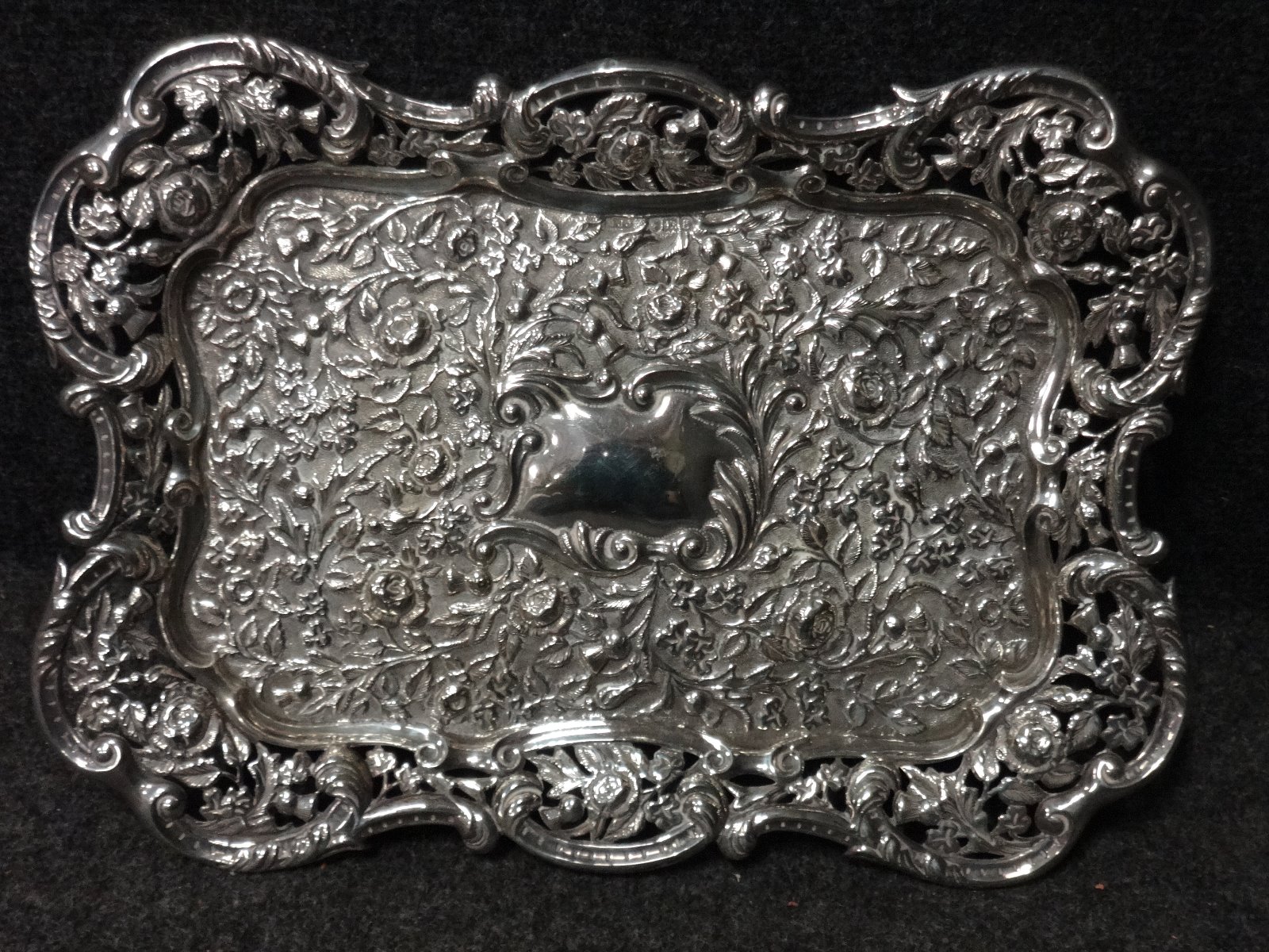 This is a rectangular antique silver tray by Mathew John Jessop London 1902 which is in excellent condition, approx. 305 grams.
