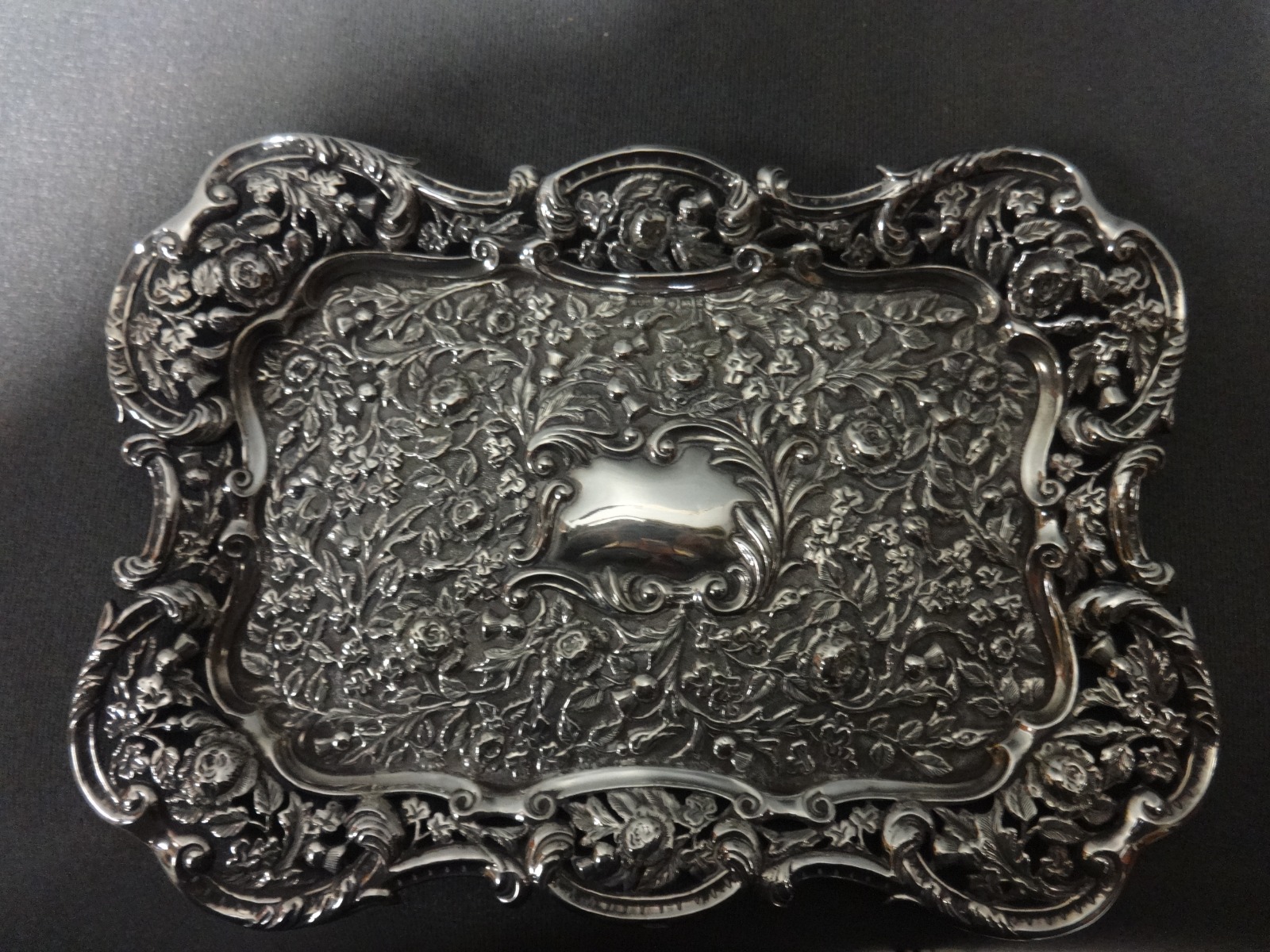 Rectangular silver tray by Mathew John Jessop London 1902, in excellent condition, approx. 305 grams.