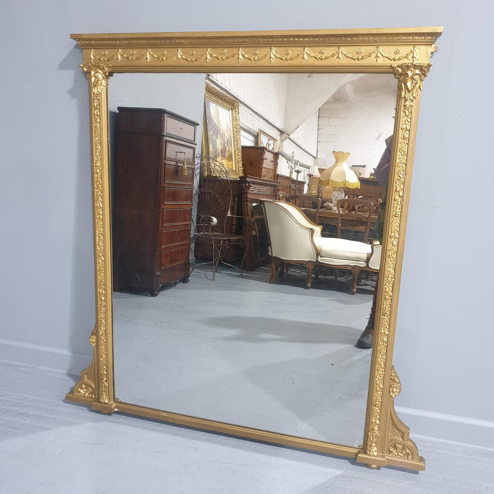 This is a very nice late 19th Century antique Victorian gilt overmantle mirror with original plate glass, in overall very good condition.