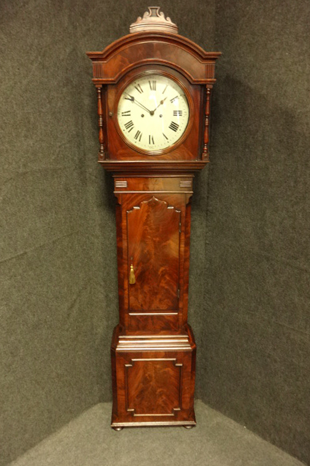 Eight day George III antique Grandfather clock, stunning quality veneers, excellent colour and condition, keeps great time.