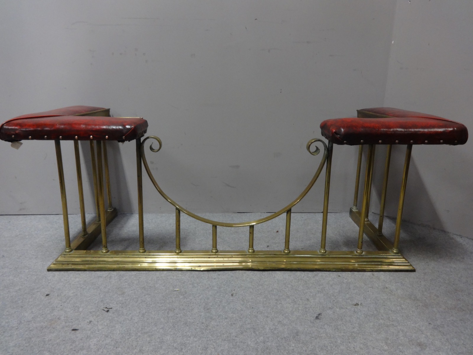 A very good quality Victorian brass club fender with red leather tops, in very good original condition.
