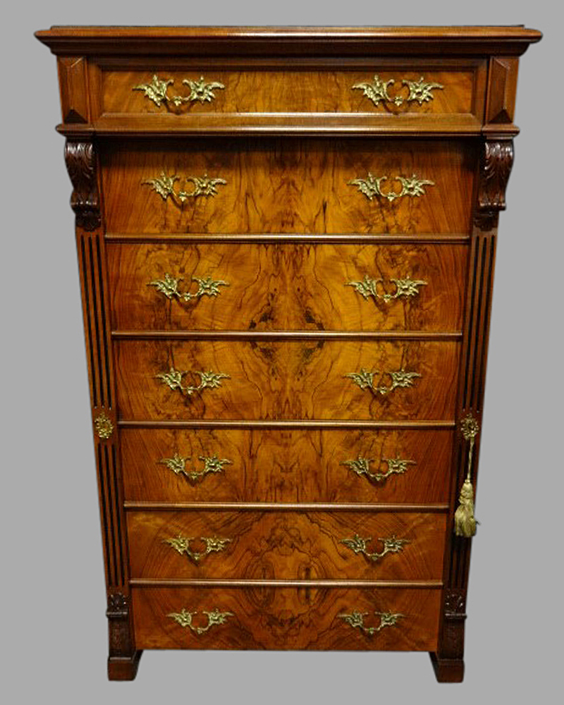 Excellent Quality Victorian Figured Walnut Wellington Chest of Drawers