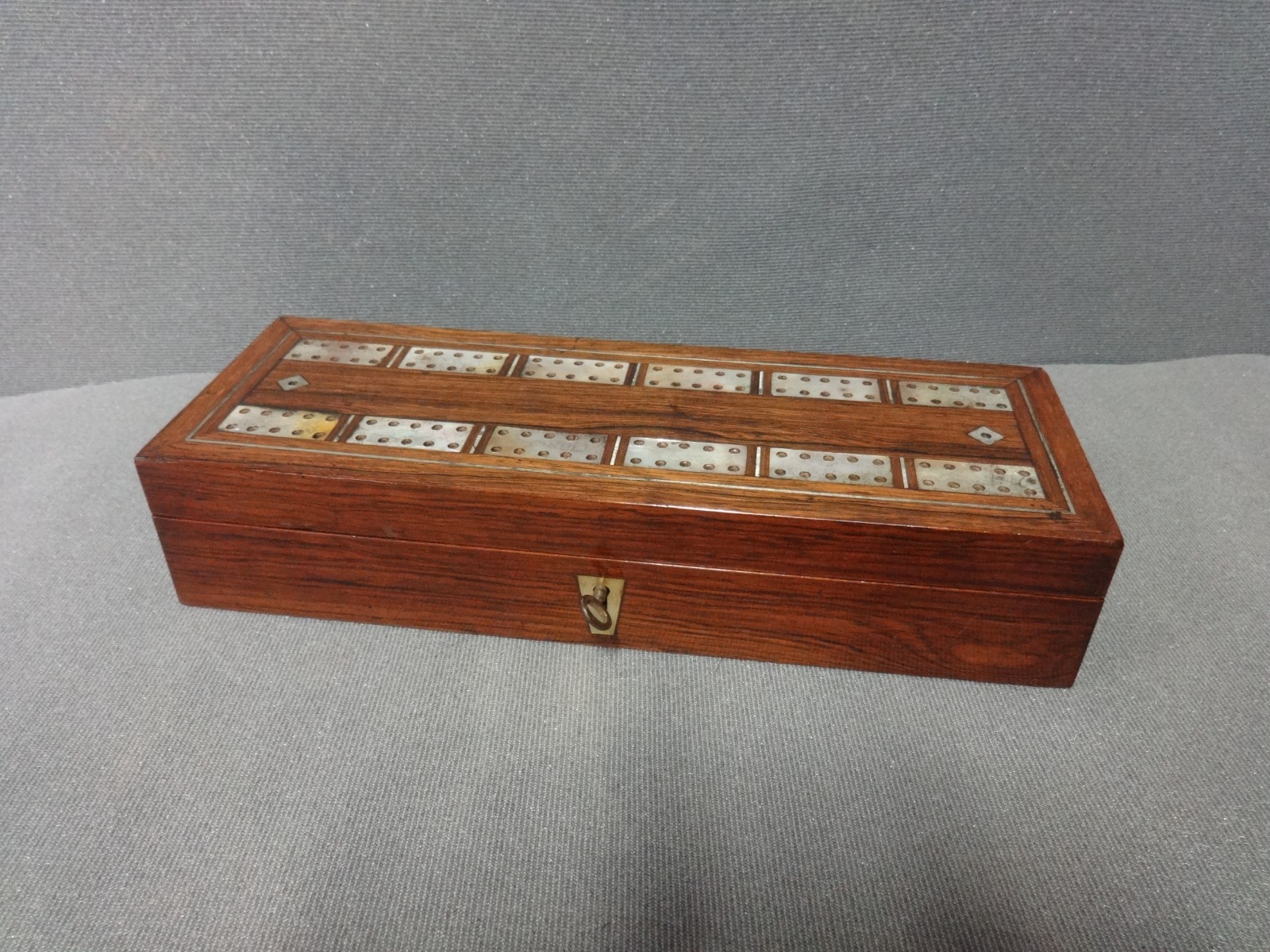 Excellent Rosewood Inlaid Cribbage Games Box (2)