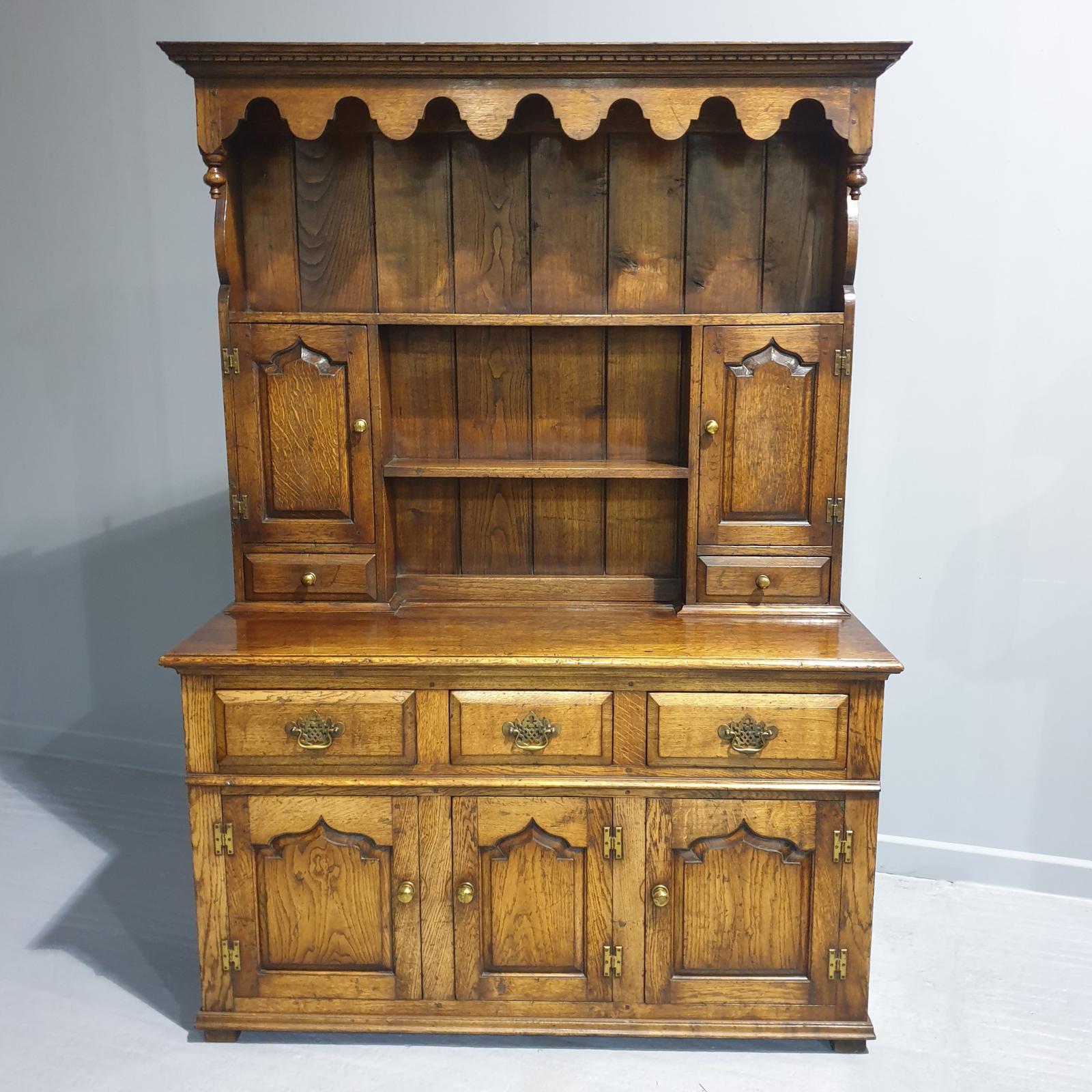 This is a very good solid oak dresser, two cupboards and two drawers to the top, and a three door three drawer base, excellent colour and condition.