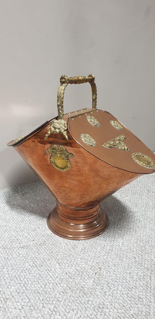 A very good Victorian copper and brass double sided log bin VR stamped, excellent condition.