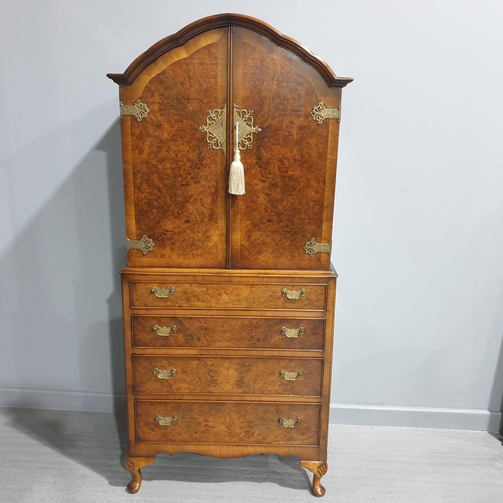 Fine Burr Walnut Linen Press