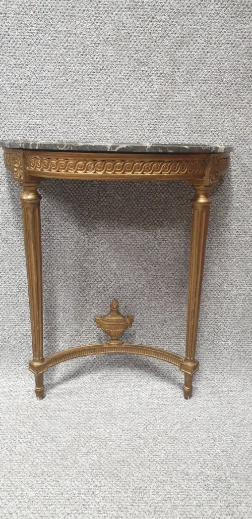 Very nice French antique gilt console table wit grey variegated marble, in overall very good condition.