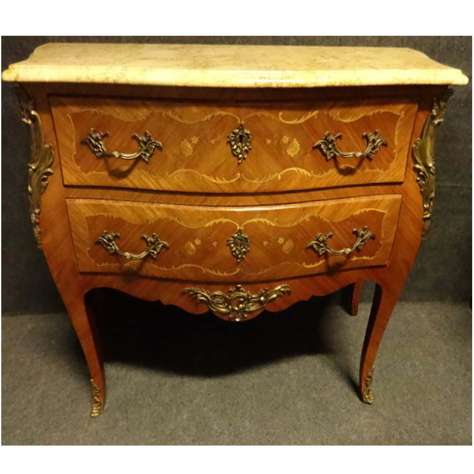 French Ormolu Mounted Marquetry Commode Chest of Drawers c.1920