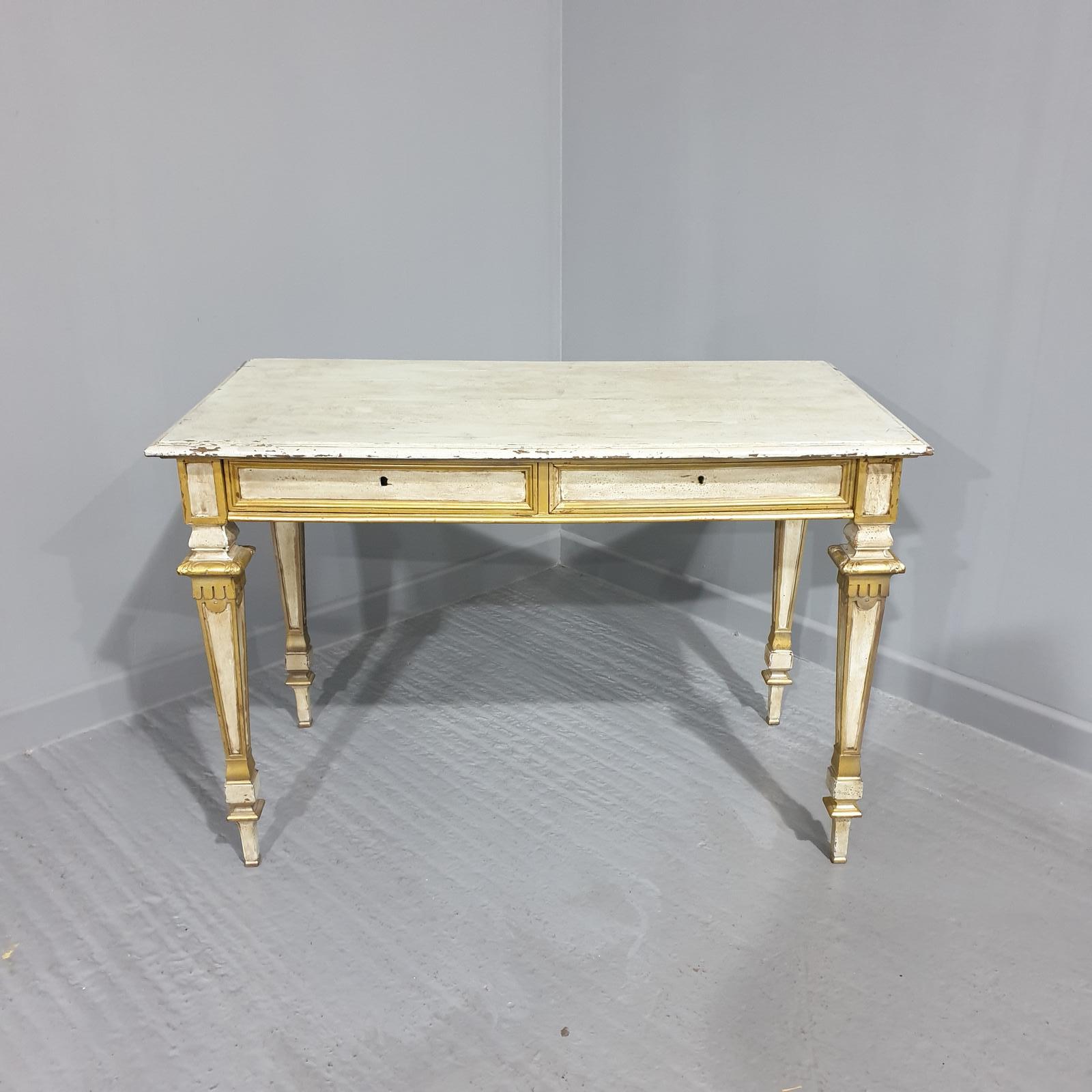 This is a good late 19th Century French antique freestanding painted two drawer side table or desk, in good overall condition.