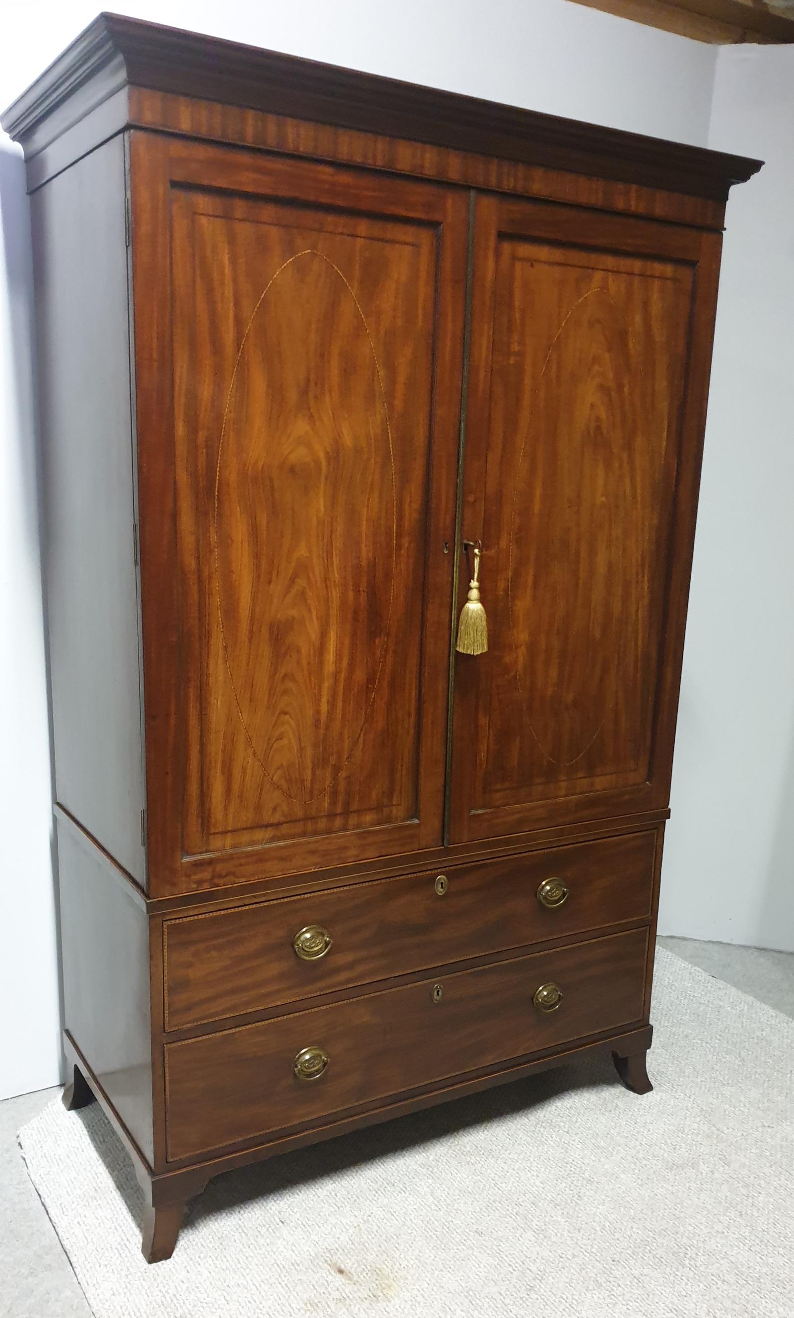 Georgian Inlaid Mahogany Linen Press