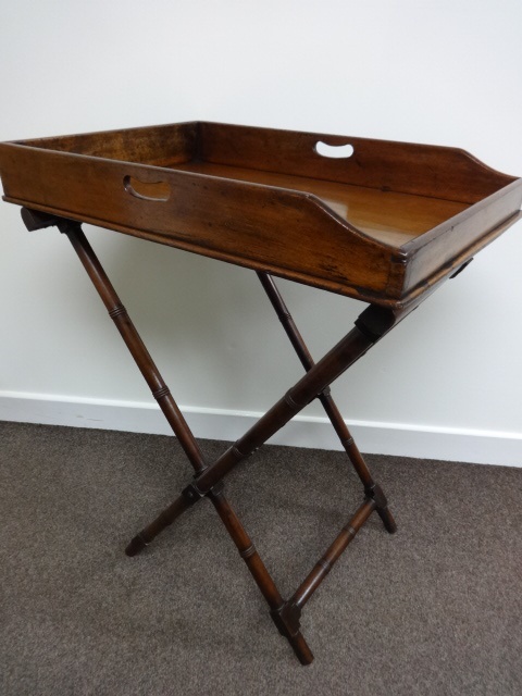 This is a very good Georgian antique mahogany butlers tray on stand. It has an excellent colour and condition.