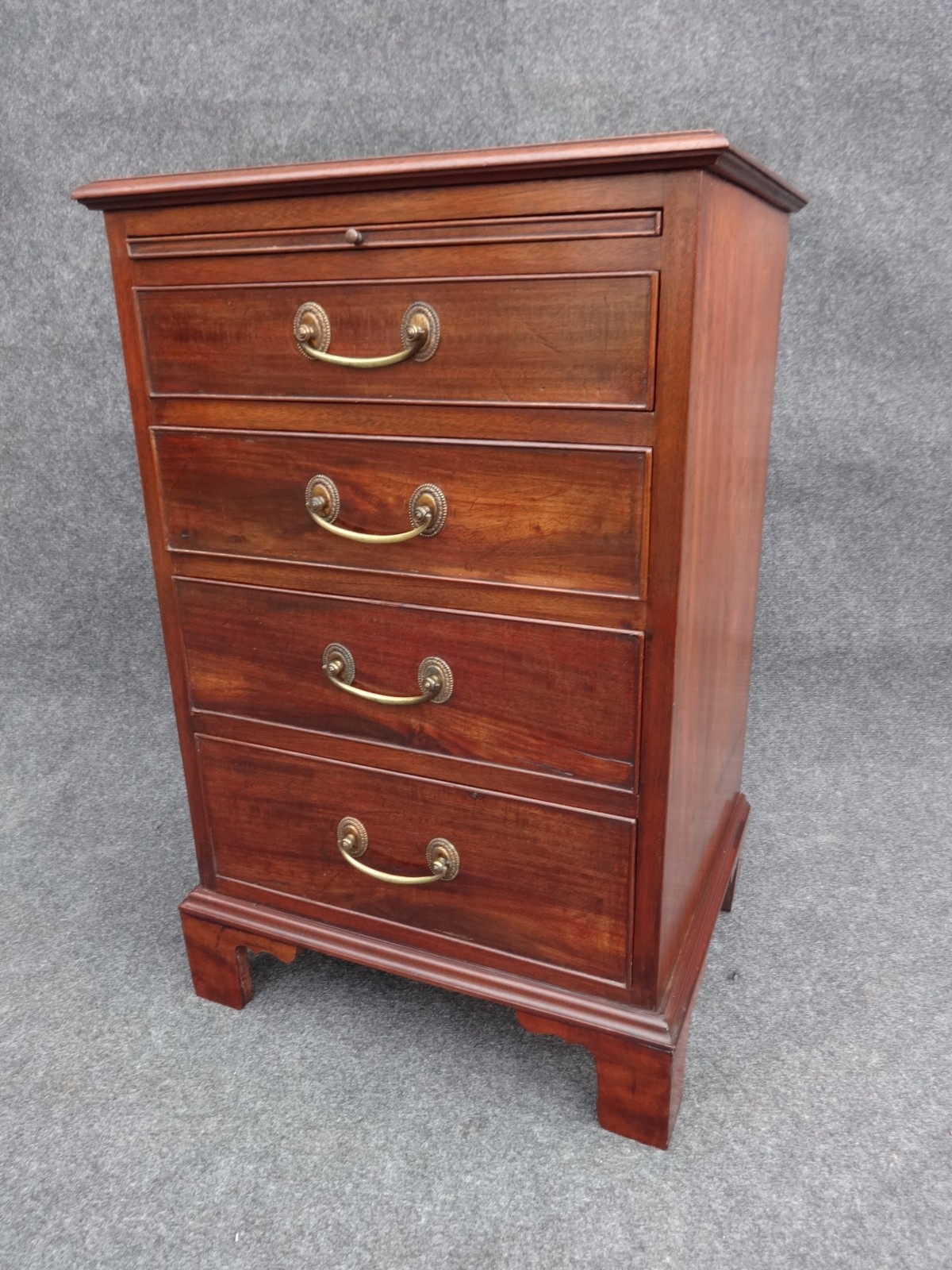 This is a very good 4 drawer 19th Century Georgian antique chest of mahogany drawers with brushing slide, replacement feet, in very good condition.