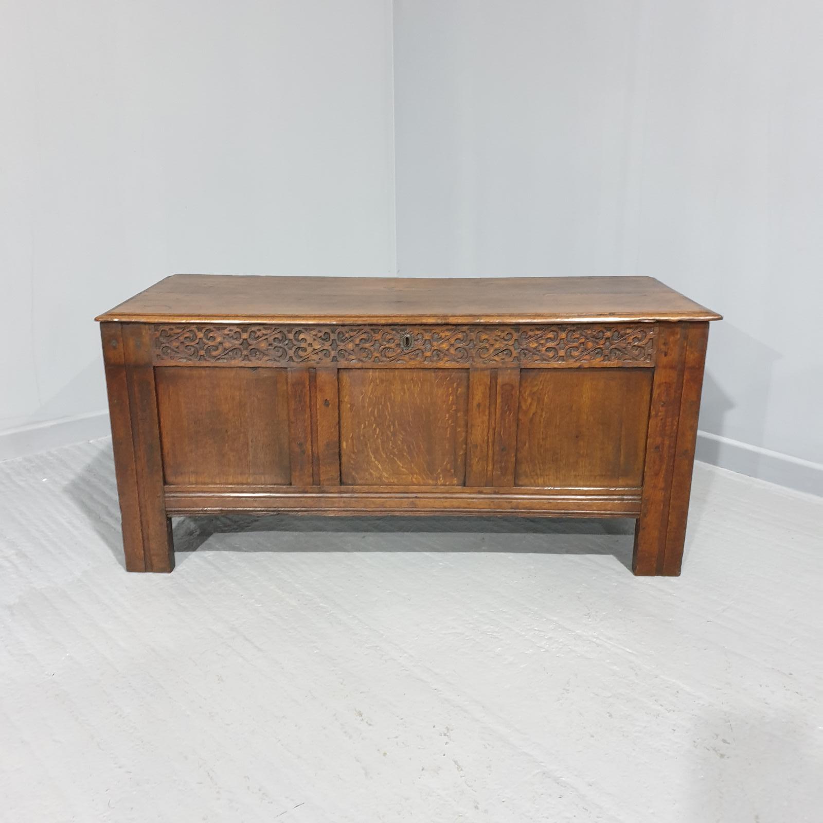 Early Georgian antique three panel coffer with two plank top, and it would make excellent coffee table, very nice colour.