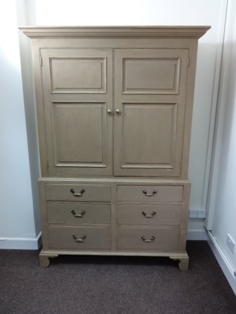 Georgian Painted Pine Cupboard on Chest / Linen Press c.1790