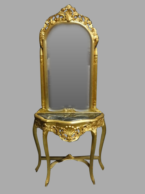 This is a good freestanding gilt console table, with inset black veined marble, and matching mirror.