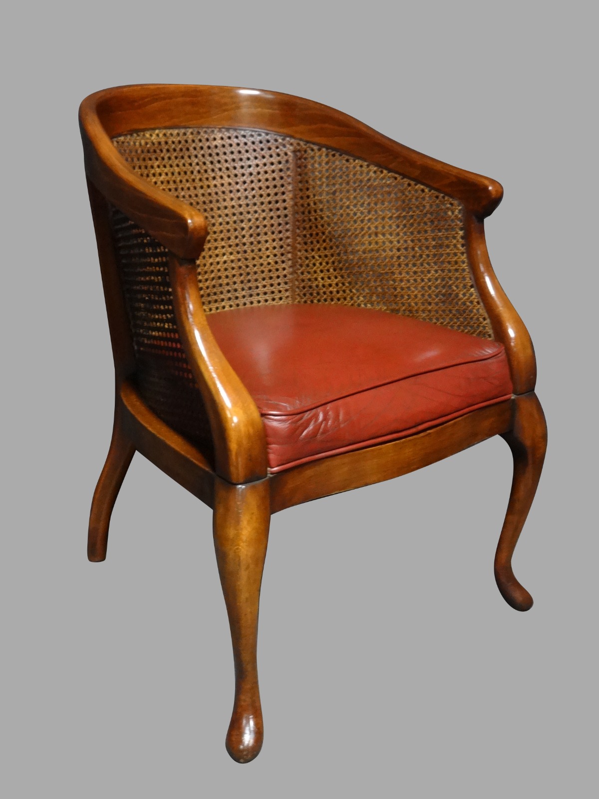 This is a very good bergere office, desk chair with red leather fixed seat, in excellent original condition.