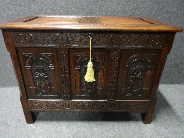 Good Carved Oak Coffer c.1900