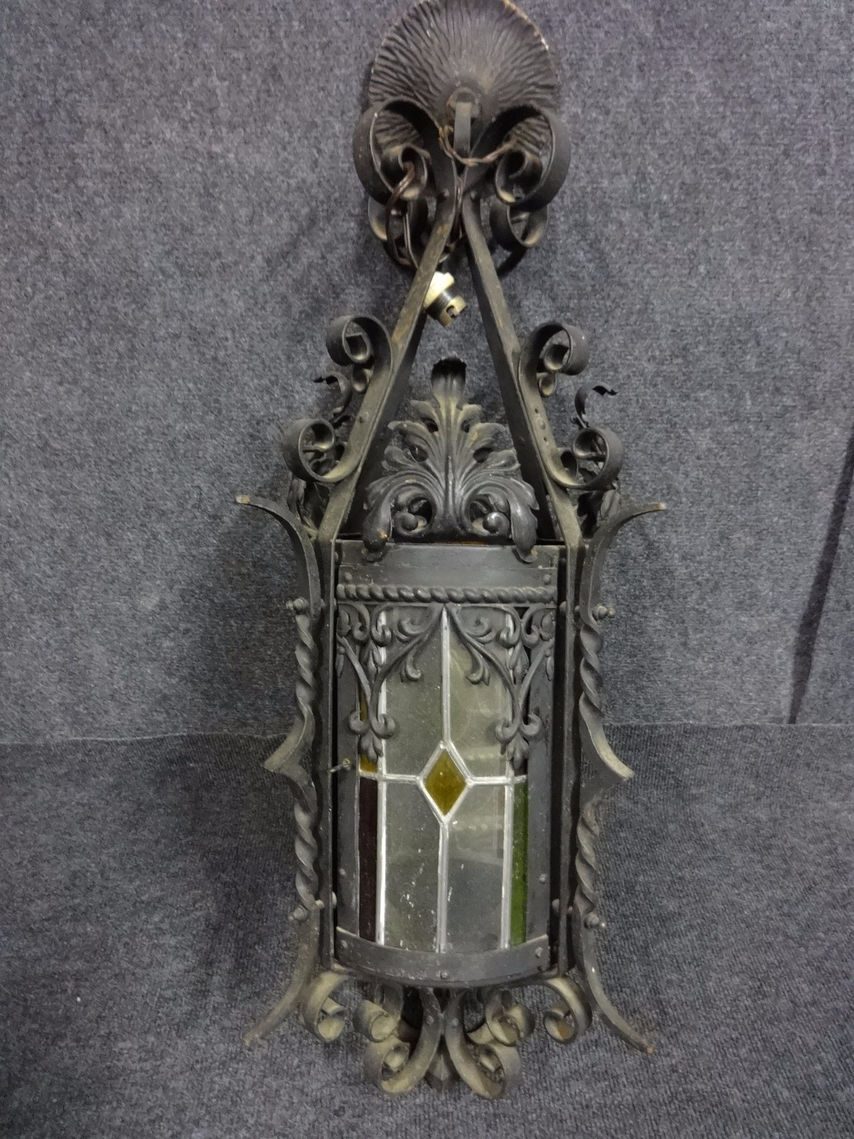 Leaded panels of clear, red and yellow glass with cut glass yellow lozenge, in very good condition.