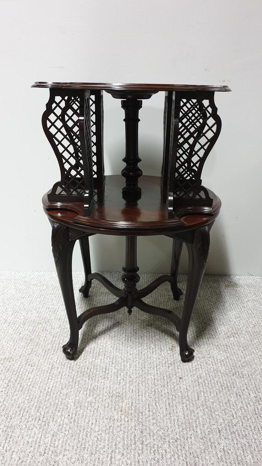 A very good 19th Century antique mahogany revolving bookcase with pierced dividers, in excellent condition.