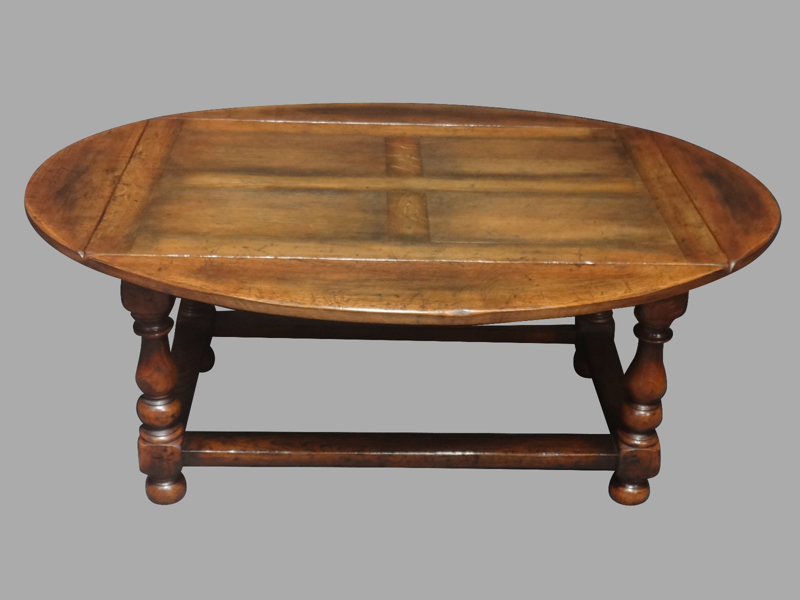 This is a very good quality solid oak oval coffee table, with drop down sides, turned legs and stretchers, very good condition.