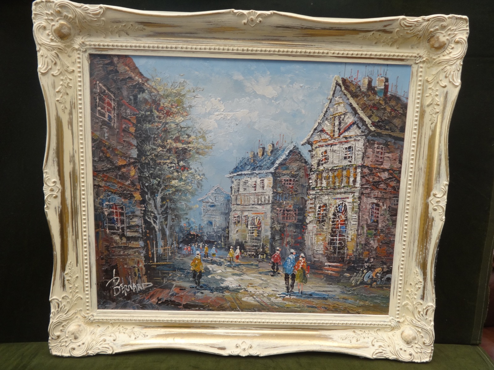 A very nice oil on canvas of a street scene, signed Bernard, in a parcel gilt frame, all in excellent condition.