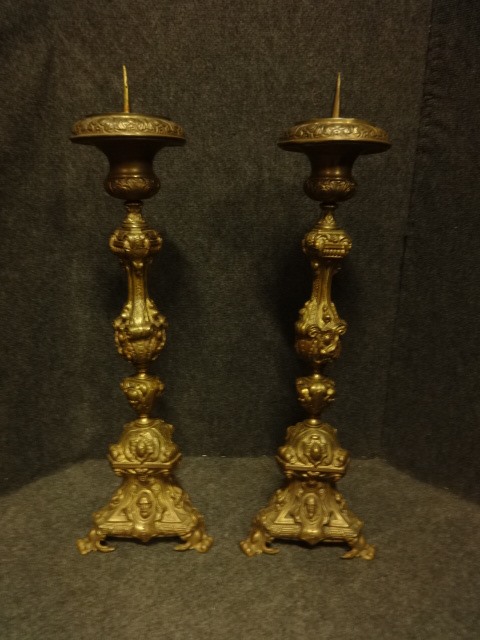 These are very rare to get a Victorian pair of pressed brass candlesticks in excellent condition.