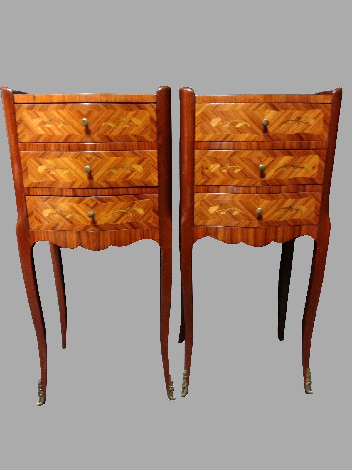 Good Pair of French Serpentine Kingwood Bedside Chests of Drawers