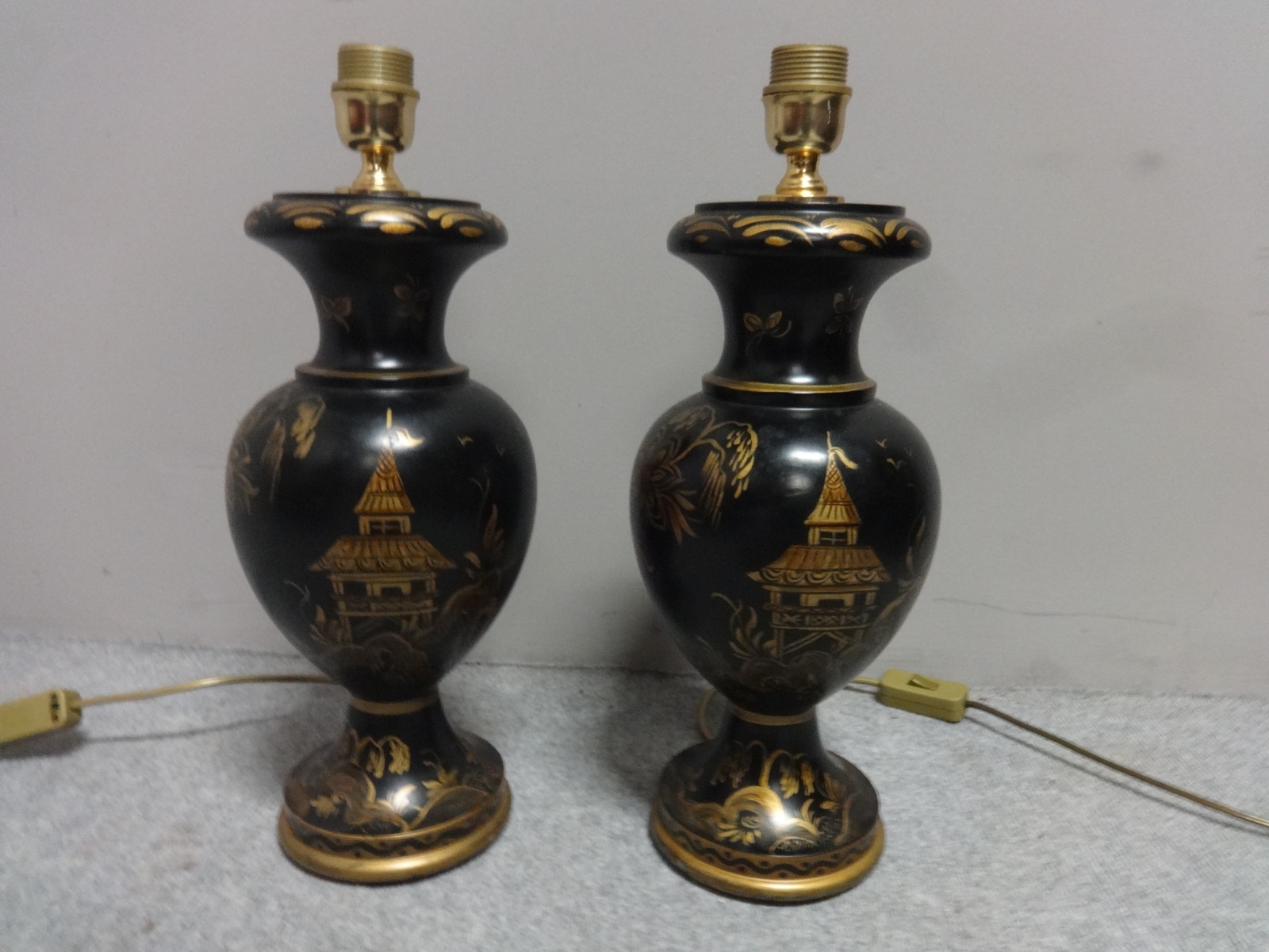 Good Pair of Lacquered & Wood Table Lamps c.1930