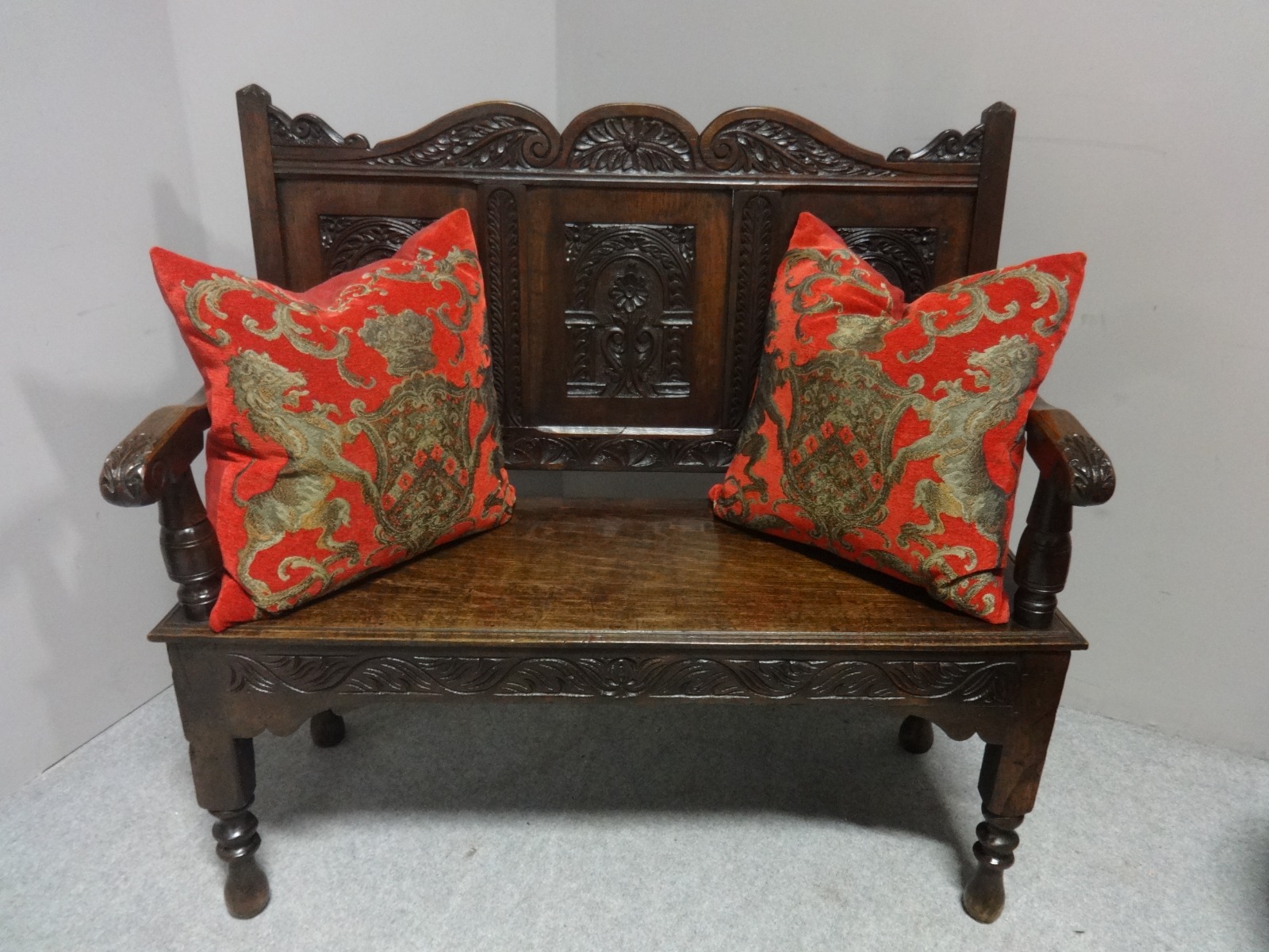 A very good Georgian oak three panel settle, peg jointed throughout, in very good condition with a good colour.