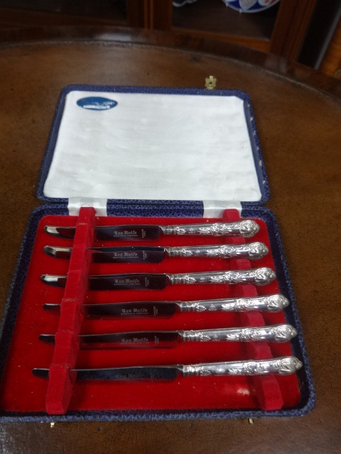 These are a very good boxed set of antique silver handled knives in very good condition.