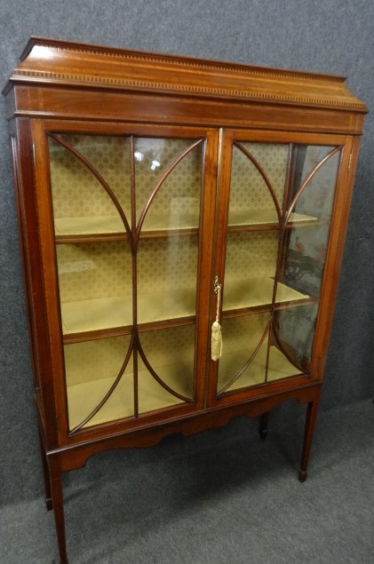 This is a pretty antique inlaid mahogany cabinet which is in original good condition.