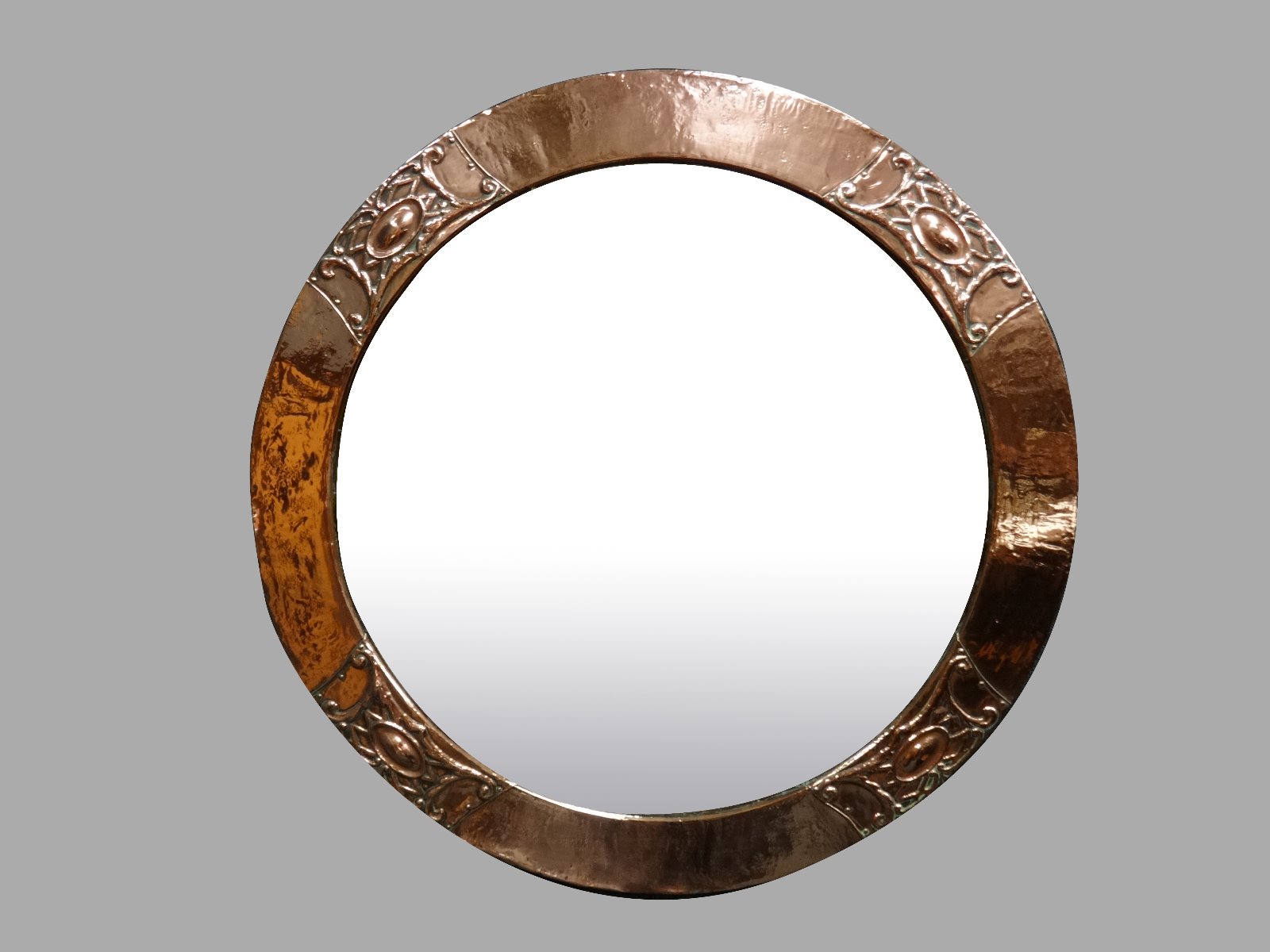 Excellent quality large copper mirror from the arts and crafts period, original bevelled plate glass, in excellent condition.