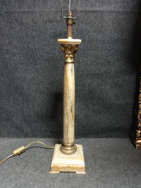 This is a very good colour Corinthium column alabaster lamp with brass mounts in excellent condition.