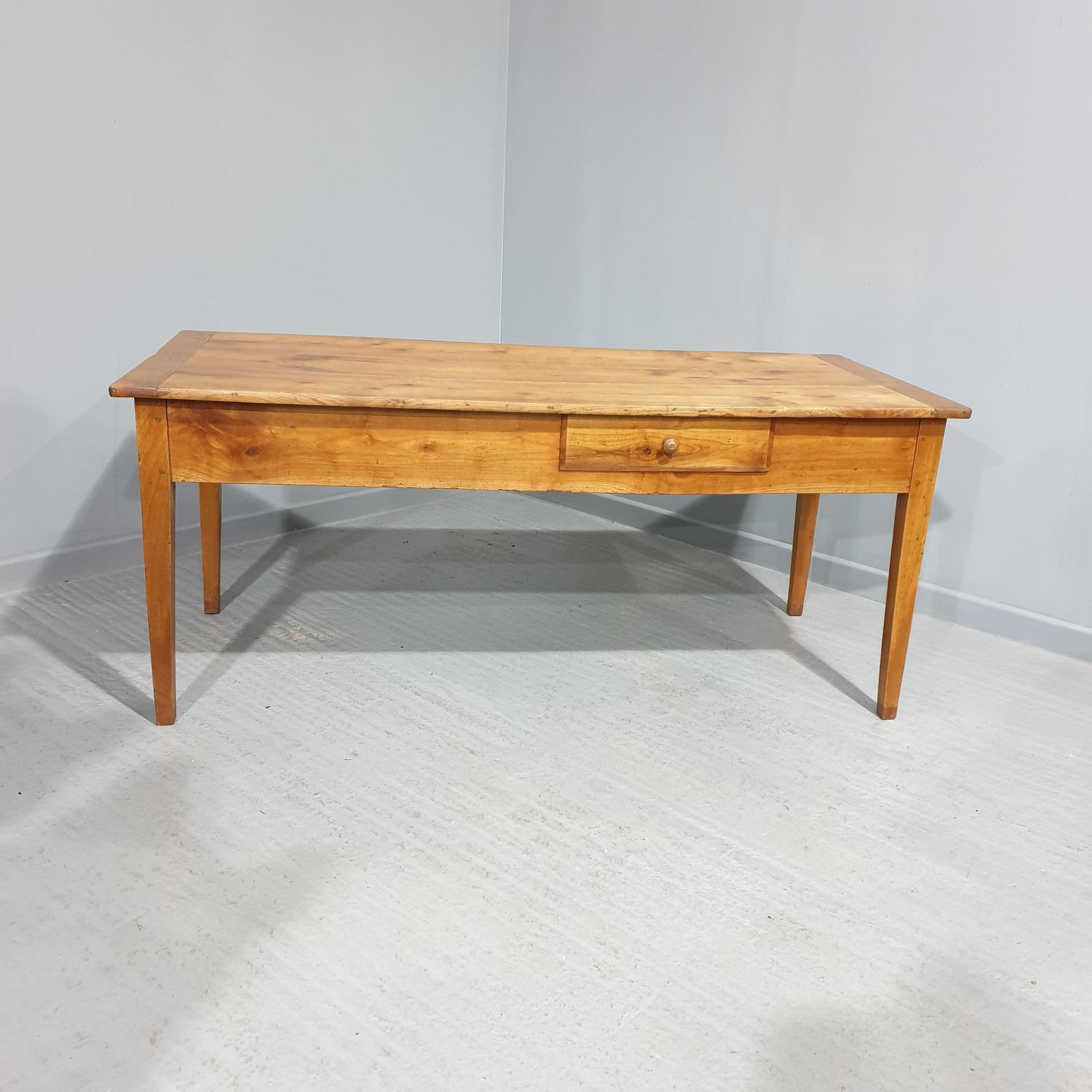 This is a very good large 10 seater French cherrywood farmhouse kitchen dining table, single drawer to the side, full width end deep drawer, in overall excellent colour and condition, historic worm holes to the top.