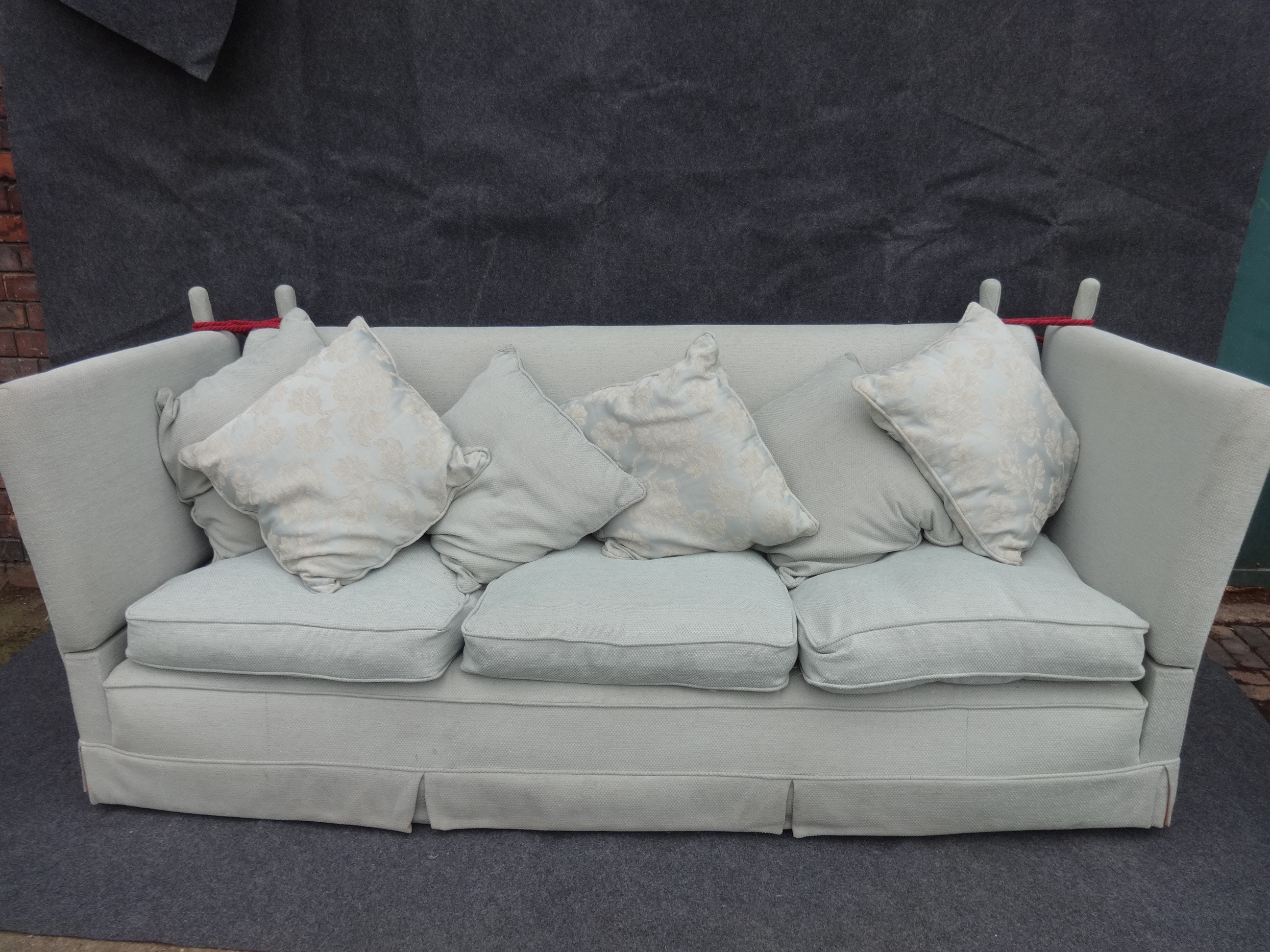 3 seater knoll sofa, with feather filled cushions, comes with 5 matching cushions, very comfortable and in very good condition.